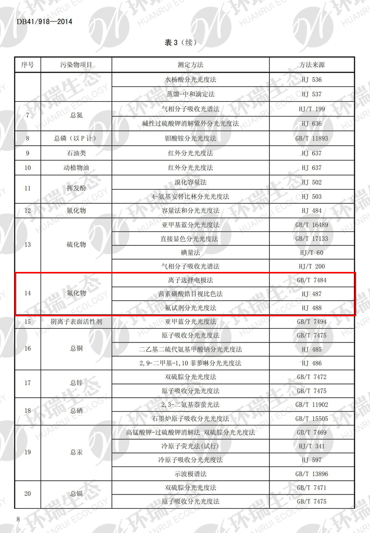 氟化物之河南《惠济河流域水污染物排放标准》DB41/918--2014